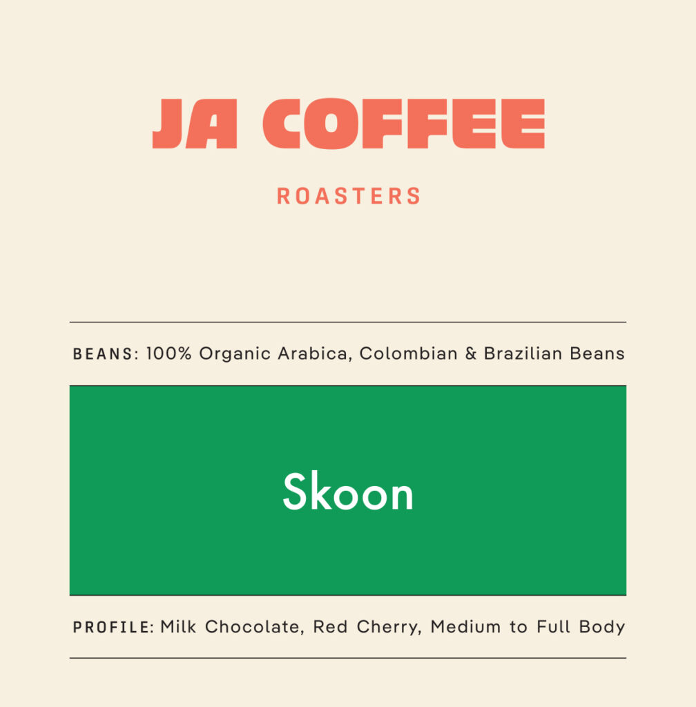 Crafted from certified organic beans, Skoon is a smooth, medium-bodied blend with rich chocolate and subtle red berry tones. Pure and balanced, it’s a wholesome cup that shines whether enjoyed black or with milk.